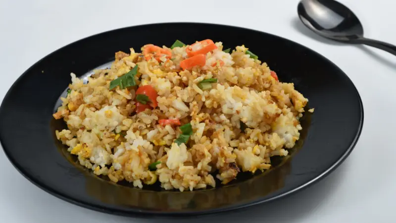 フライパンで目玉焼きを作ってからご飯を投入するという斬新なスタイルです。